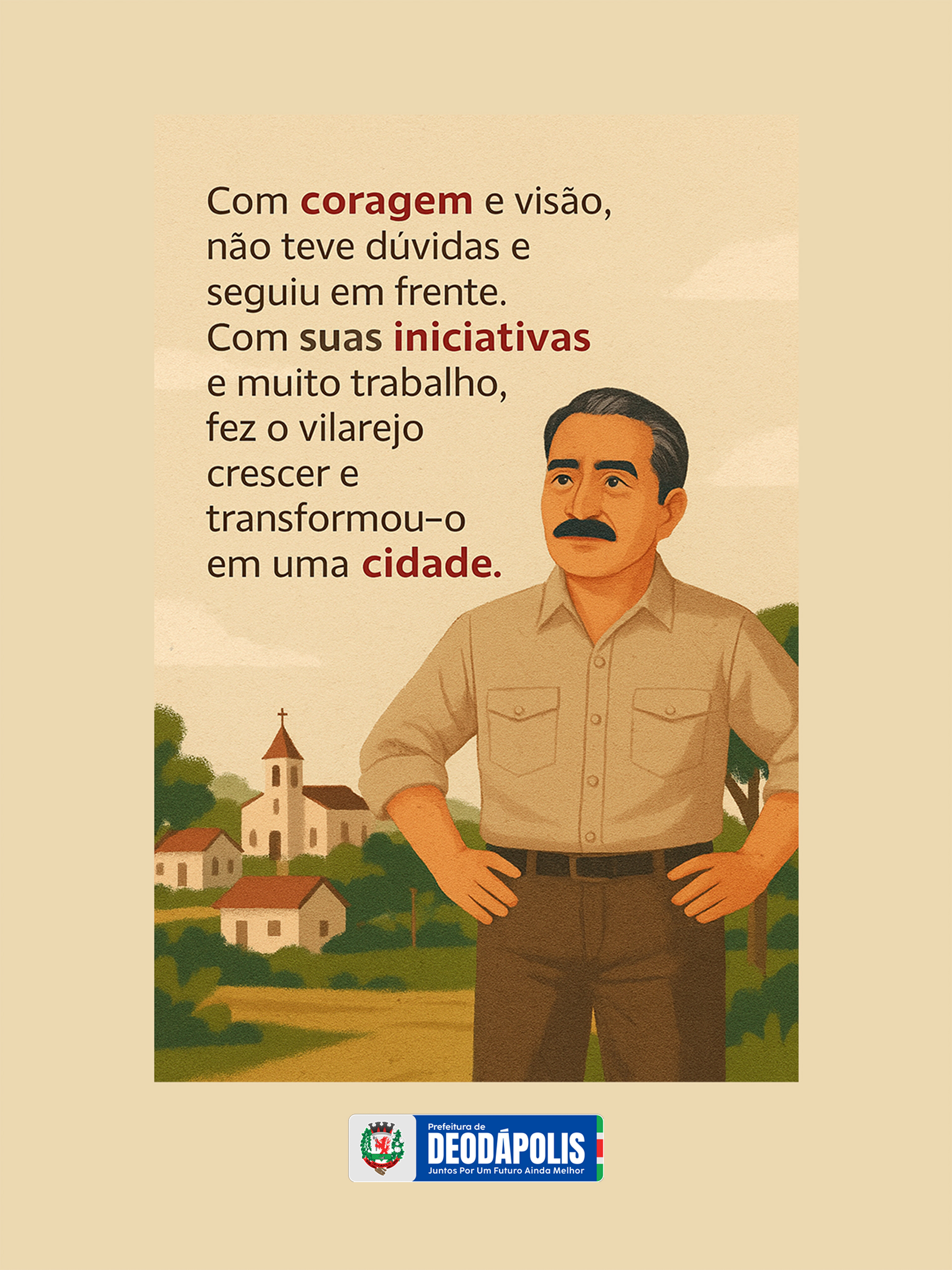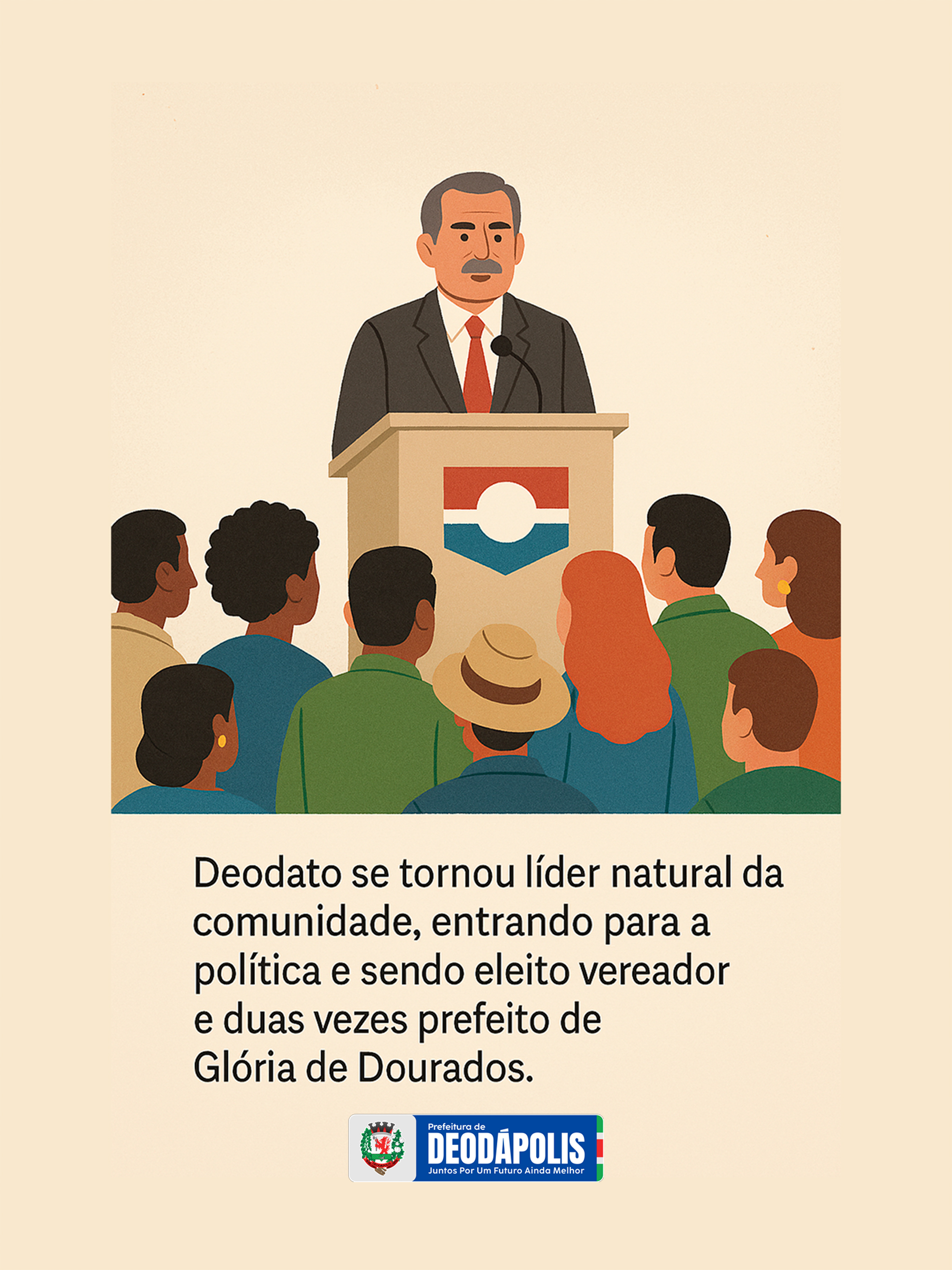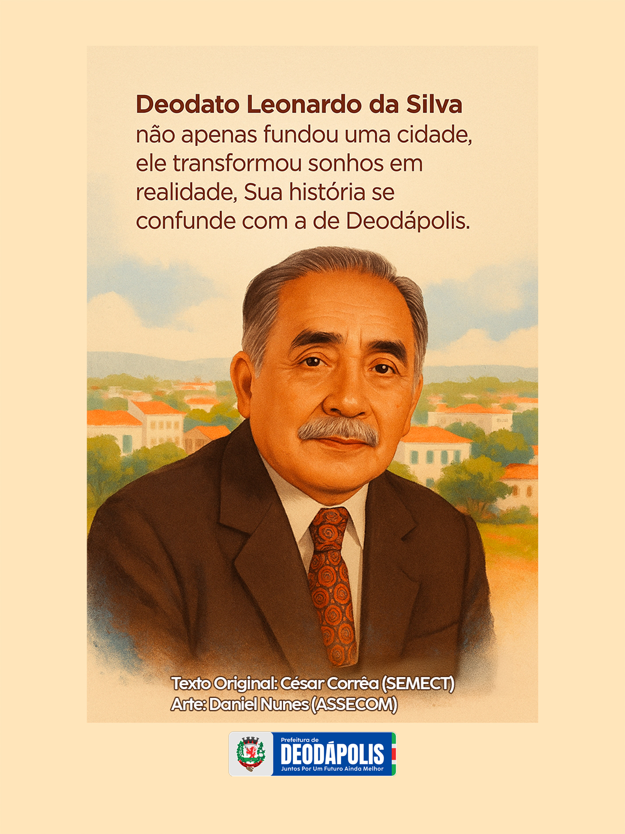 Hoje, feriado municipal, prestamos esta homenagem ao nosso fundador Deodato Leonardo da Silva, cuja vida e legado deram origem à história de Deodápolis. Mais do que lembrar sua partida, celebramos o exemplo de coragem, visão e amor por esta terra, que se confunde com a própria história do nosso povo. DEODATO LEONARDO DA SILVA, fundador, homem que fez do seu sonho uma realidade chamada DEODÁPOLIS. Esse nordestino, fez a mesma viagem igual a muitos dos seus conterrâneos até chegar por aqui. Naquela época, era muito comum as pessoas deixarem o nordeste Brasileiro, para ir em busca de uma vida melhor. Como se fosse um estágio, a primeira parada era quase sempre no estado de São Paulo, no início a lavoura era o seu ganha pão. Foi dessa forma que a família Leonardo chegou a região de MIRANTE DO PARANAPANEMA, estado de São Paulo. Após alguns anos de trabalho, e com a vida mais estabilizada, Deodato e família sentiu mais uma vez a necessidade de seguir um novo rumo, o destino dessa vez era o estado do Mato Grosso. Seduzido por desafios, e com uma visão de futuro, não teve dúvidas, fez a mudança e seguiu em frente. Com ele vieram todos da família LEONARDO, os pais seu RAIMUNDO LEONARDO DA SILVA e dona ADELAIDE ALVES DE LIMA. Já casado com MARIA FERREIRA DA SILVA (Dona Meirinha), o casal contava com os filhos EXPEDITO LEONARDO DA SILVA (Dito), ANTÔNIO LEONARDO DA SILVA (Zeno) e CÉLIO LEONARDO DA SILVA, a caçula LEILA MARIA DA SILVA nasceu em DEODÁPOLIS. Com Deodato veio também seus irmãos, TONHEIRO, DULCINA, ROSINHA, CIÇO, NONATO, FRANCISCA, LENITA e TOINHO. Faziam parte da família que seguiram na mesma viagem, seus cunhados, cunhadas, sobrinhos, e também os netos de seu RAIMUNDO e dona ADELAIDE. Acreditando na capacidade do jovem sonhador e empreendedor, muitos amigos e conterrâneos também resolveram seguir junto com DEODATO rumo a terra prometida. Chegaram aqui em 1959, encontraram poucos moradores, não existia ruas, os deslocamentos de um lugar para o outro era feito por trieiros no meio do mato. Sem luz e com muita falta de recursos básicos, tiveram que improvisar tudo, começar da estaca zero. Uma lembrança era um “buteco”, que naquele tempo chamavam de “bolicho”, o proprietário era um senhor que atendia pelo nome de “João da Moça”, o restante dos moradores eram sitiantes que fazia parte da sua grande maioria. Deodato teve que trabalhar duro, não tinha dia nem hora, a batalha foi árdua, mais o desejo de fazer daquele vilarejo uma grande cidade era o seu maior sonho. A princípio, teve que suar a camisa junto com os primeiros moradores, existia muito serviço a fazer, abrindo estradas, picadas e desbravando florestas. Tudo isso foi necessário para que as famílias, na sua maioria de retirantes nordestinos, pudessem dar os primeiros passos no trabalho com a terra. Deodato na época já tinha um certo recurso financeiro, fruto de muito trabalho realizado quando ainda estava no estado de São Paulo, com isso não mediu esforços, tinha muito a fazer naquele lugar. Homem com uma visão invejável para os negócios, corajoso e com muita vontade de trabalhar, adquiriu lotes e terras, fazendo em pouco tempo uma movimentação ainda não vista naquele pequeno povoado. Vendo que aquele homem chegou e logo foi mudando a cara do vilarejo, não demorou muito para que DEODATO ganhasse a confiança de todos e, se tornasse um líder em toda comunidade. Em um pequeno espaço de tempo já tinha feito vários investimentos, entre tantos, a CASA LEONARDO deixou uma marca, comprava cereais, comercializava algodão, amendoim, milho, arroz, café e outros tipos de mantimentos. Deodato negociava com os agricultores da zona rural, moradores local, e pessoas que vinham até de outras localidades. O pagamento sempre era feito anual, ao termino de cada safra, uma forma de também ajudar a todos. Deodato foi ganhando prestígio, a fama de homem trabalhador e de grande visionário foi percorrendo toda região, com isso seu nome foi ganhando força, não demorou para estar presente no meio político, ninguém tinha dúvida que nascia ali um grande líder político. Vieram as eleições, candidato a vereador, foi eleito pelo município de Glória de Dourados, com apoio em grande número do seu povo da 11 linha. Nas eleições seguinte com uma liderança já considerável em toda região, foi candidato e eleito prefeito de Glória de Dourados, feito esse que aconteceu por duas vezes. Mesmo na condição de prefeito nunca esqueceu da maior paixão, a sua cativante 11 linha, era aqui onde morava e tinha seus negócios e investimentos pessoais. Homem de um coração generoso, ajudou muita gente, deu suporte a várias famílias no trabalho da lavoura e da pecuária. Mesmo porque naquela época, a região ainda não tinha estrutura para receber um grande número de pessoas que chegavam de toda parte do país e principalmente do nordeste do Brasil. Deodato foi responsável por doar vários terrenos ao nosso município, foram construídos praças, igrejas e prédios de órgãos públicos na cidade. Enfim, foram muitos os benefícios deixado por Deodato. Muito participativo nas questões sociais de toda nossa região, fez várias ações em prol da população, difícil não lembrar da festa das crianças, quem viveu aquele período tem guardado na memória até hoje. Deodato distribuía presentes em cima de um caminhão lotado de brinquedos e roupas, o acontecimento era feito em sua casa, virou tradição, todos os anos era realizado. Apaixonado por futebol, foi o criador do E.C BANDEIRANTES, uma das melhores e mais fortes equipes da história do futebol DEODÁPOLENSE e de toda região da grande DOURADOS. Time feito de grandes jogadores, entre eles, TOINHO, TIÃO, VALDEMAR, MANÉZINHO, NEQUINHA, ELISEU, CIÇO LEONARDO, BARRINHA, foram muitos os craques que passaram pelo E.C BANDEIRANTES. Já reconhecido como um grande líder, político e representante do povo, era fácil ver 