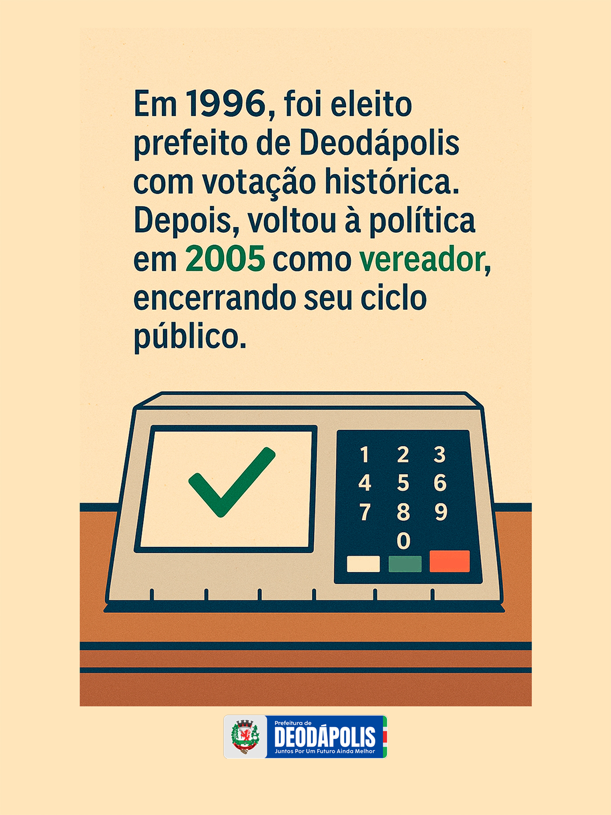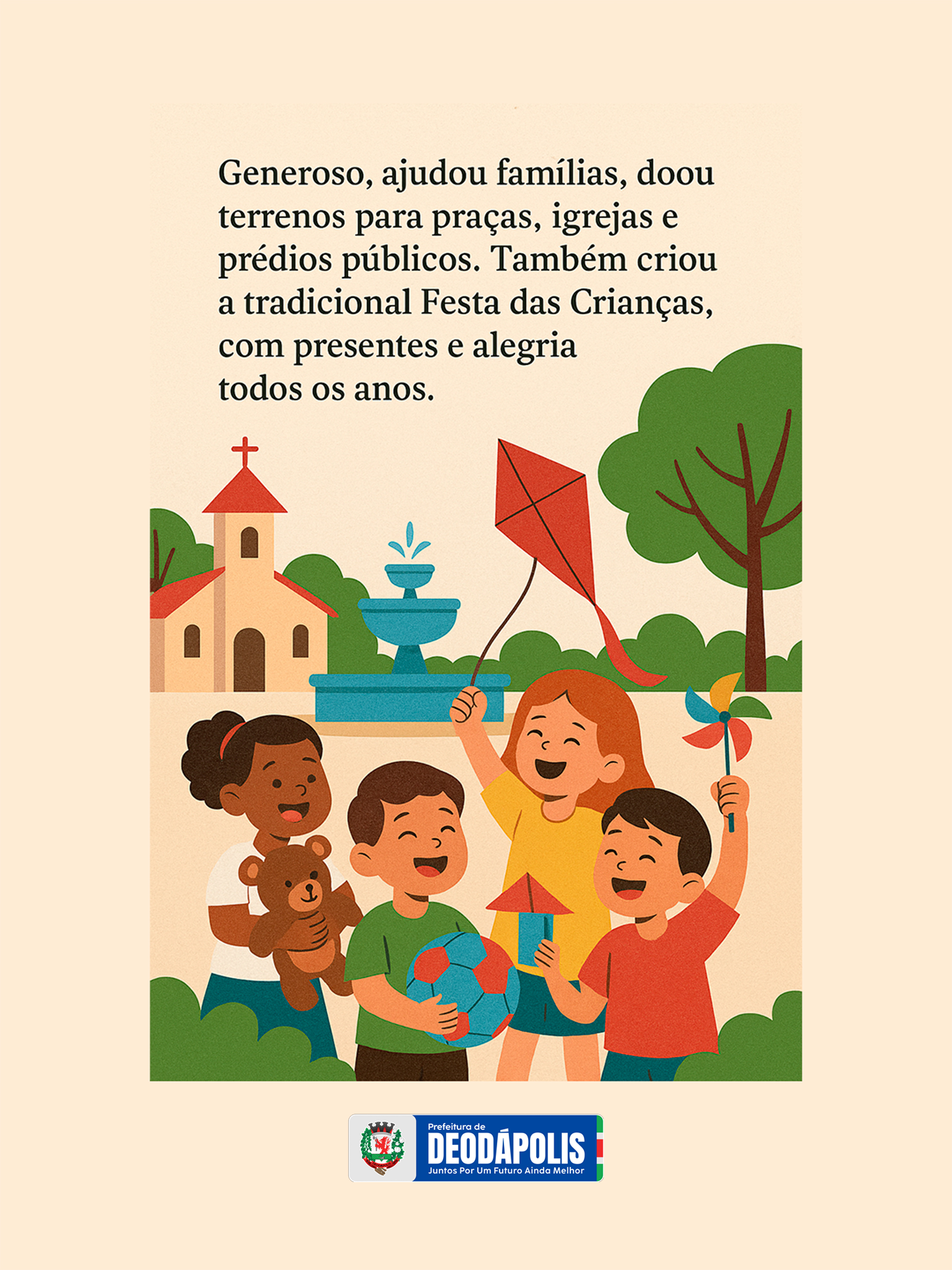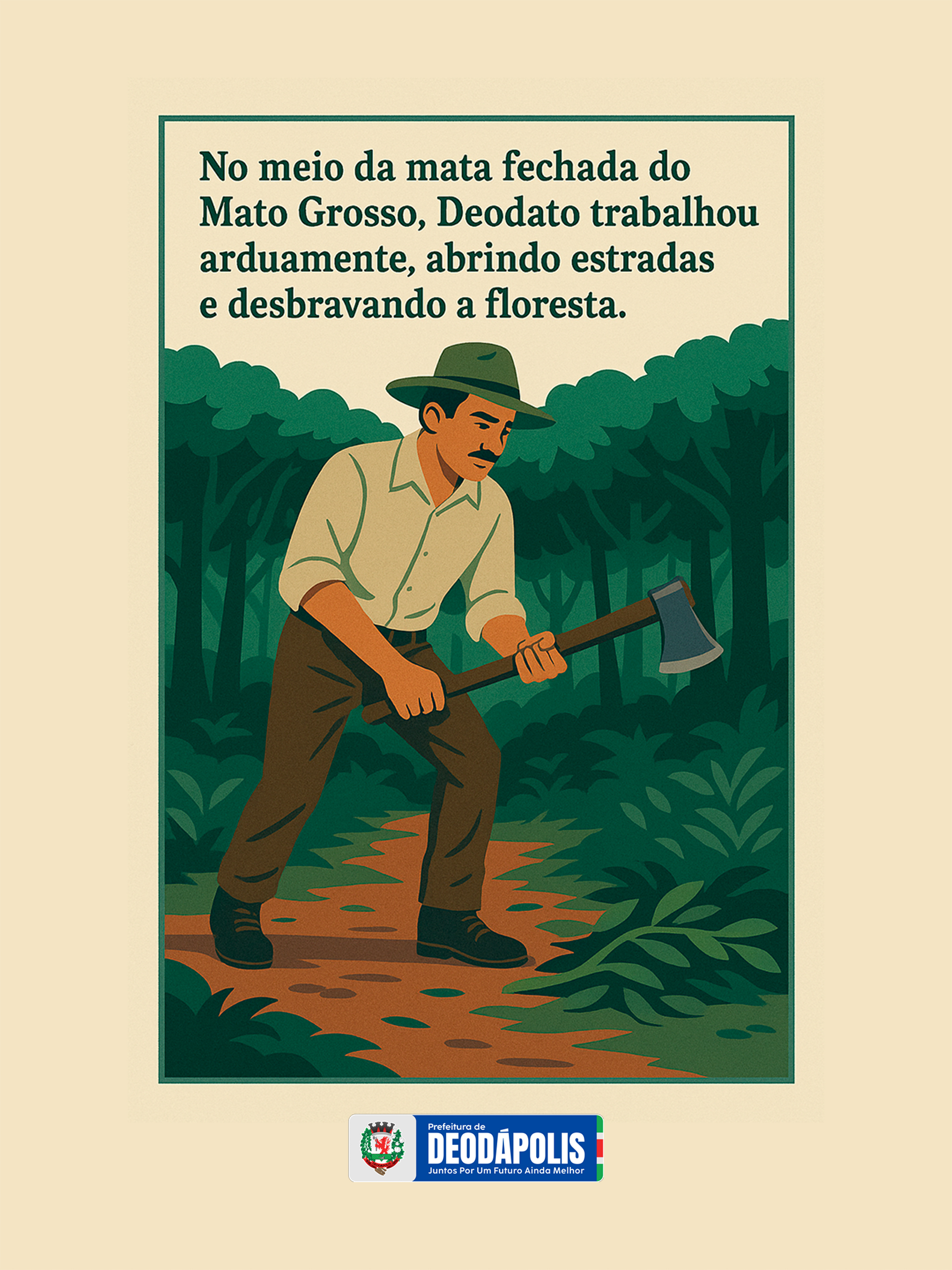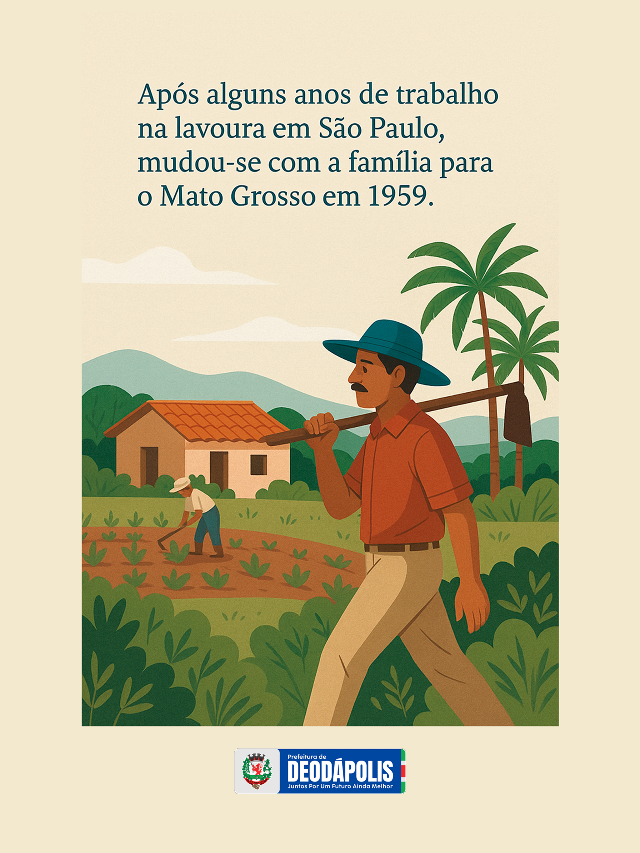 Hoje, feriado municipal, prestamos esta homenagem ao nosso fundador Deodato Leonardo da Silva, cuja vida e legado deram origem à história de Deodápolis. Mais do que lembrar sua partida, celebramos o exemplo de coragem, visão e amor por esta terra, que se confunde com a própria história do nosso povo. DEODATO LEONARDO DA SILVA, fundador, homem que fez do seu sonho uma realidade chamada DEODÁPOLIS. Esse nordestino, fez a mesma viagem igual a muitos dos seus conterrâneos até chegar por aqui. Naquela época, era muito comum as pessoas deixarem o nordeste Brasileiro, para ir em busca de uma vida melhor. Como se fosse um estágio, a primeira parada era quase sempre no estado de São Paulo, no início a lavoura era o seu ganha pão. Foi dessa forma que a família Leonardo chegou a região de MIRANTE DO PARANAPANEMA, estado de São Paulo. Após alguns anos de trabalho, e com a vida mais estabilizada, Deodato e família sentiu mais uma vez a necessidade de seguir um novo rumo, o destino dessa vez era o estado do Mato Grosso. Seduzido por desafios, e com uma visão de futuro, não teve dúvidas, fez a mudança e seguiu em frente. Com ele vieram todos da família LEONARDO, os pais seu RAIMUNDO LEONARDO DA SILVA e dona ADELAIDE ALVES DE LIMA. Já casado com MARIA FERREIRA DA SILVA (Dona Meirinha), o casal contava com os filhos EXPEDITO LEONARDO DA SILVA (Dito), ANTÔNIO LEONARDO DA SILVA (Zeno) e CÉLIO LEONARDO DA SILVA, a caçula LEILA MARIA DA SILVA nasceu em DEODÁPOLIS. Com Deodato veio também seus irmãos, TONHEIRO, DULCINA, ROSINHA, CIÇO, NONATO, FRANCISCA, LENITA e TOINHO. Faziam parte da família que seguiram na mesma viagem, seus cunhados, cunhadas, sobrinhos, e também os netos de seu RAIMUNDO e dona ADELAIDE. Acreditando na capacidade do jovem sonhador e empreendedor, muitos amigos e conterrâneos também resolveram seguir junto com DEODATO rumo a terra prometida. Chegaram aqui em 1959, encontraram poucos moradores, não existia ruas, os deslocamentos de um lugar para o outro era feito por trieiros no meio do mato. Sem luz e com muita falta de recursos básicos, tiveram que improvisar tudo, começar da estaca zero. Uma lembrança era um “buteco”, que naquele tempo chamavam de “bolicho”, o proprietário era um senhor que atendia pelo nome de “João da Moça”, o restante dos moradores eram sitiantes que fazia parte da sua grande maioria. Deodato teve que trabalhar duro, não tinha dia nem hora, a batalha foi árdua, mais o desejo de fazer daquele vilarejo uma grande cidade era o seu maior sonho. A princípio, teve que suar a camisa junto com os primeiros moradores, existia muito serviço a fazer, abrindo estradas, picadas e desbravando florestas. Tudo isso foi necessário para que as famílias, na sua maioria de retirantes nordestinos, pudessem dar os primeiros passos no trabalho com a terra. Deodato na época já tinha um certo recurso financeiro, fruto de muito trabalho realizado quando ainda estava no estado de São Paulo, com isso não mediu esforços, tinha muito a fazer naquele lugar. Homem com uma visão invejável para os negócios, corajoso e com muita vontade de trabalhar, adquiriu lotes e terras, fazendo em pouco tempo uma movimentação ainda não vista naquele pequeno povoado. Vendo que aquele homem chegou e logo foi mudando a cara do vilarejo, não demorou muito para que DEODATO ganhasse a confiança de todos e, se tornasse um líder em toda comunidade. Em um pequeno espaço de tempo já tinha feito vários investimentos, entre tantos, a CASA LEONARDO deixou uma marca, comprava cereais, comercializava algodão, amendoim, milho, arroz, café e outros tipos de mantimentos. Deodato negociava com os agricultores da zona rural, moradores local, e pessoas que vinham até de outras localidades. O pagamento sempre era feito anual, ao termino de cada safra, uma forma de também ajudar a todos. Deodato foi ganhando prestígio, a fama de homem trabalhador e de grande visionário foi percorrendo toda região, com isso seu nome foi ganhando força, não demorou para estar presente no meio político, ninguém tinha dúvida que nascia ali um grande líder político. Vieram as eleições, candidato a vereador, foi eleito pelo município de Glória de Dourados, com apoio em grande número do seu povo da 11 linha. Nas eleições seguinte com uma liderança já considerável em toda região, foi candidato e eleito prefeito de Glória de Dourados, feito esse que aconteceu por duas vezes. Mesmo na condição de prefeito nunca esqueceu da maior paixão, a sua cativante 11 linha, era aqui onde morava e tinha seus negócios e investimentos pessoais. Homem de um coração generoso, ajudou muita gente, deu suporte a várias famílias no trabalho da lavoura e da pecuária. Mesmo porque naquela época, a região ainda não tinha estrutura para receber um grande número de pessoas que chegavam de toda parte do país e principalmente do nordeste do Brasil. Deodato foi responsável por doar vários terrenos ao nosso município, foram construídos praças, igrejas e prédios de órgãos públicos na cidade. Enfim, foram muitos os benefícios deixado por Deodato. Muito participativo nas questões sociais de toda nossa região, fez várias ações em prol da população, difícil não lembrar da festa das crianças, quem viveu aquele período tem guardado na memória até hoje. Deodato distribuía presentes em cima de um caminhão lotado de brinquedos e roupas, o acontecimento era feito em sua casa, virou tradição, todos os anos era realizado. Apaixonado por futebol, foi o criador do E.C BANDEIRANTES, uma das melhores e mais fortes equipes da história do futebol DEODÁPOLENSE e de toda região da grande DOURADOS. Time feito de grandes jogadores, entre eles, TOINHO, TIÃO, VALDEMAR, MANÉZINHO, NEQUINHA, ELISEU, CIÇO LEONARDO, BARRINHA, foram muitos os craques que passaram pelo E.C BANDEIRANTES. Já reconhecido como um grande líder, político e representante do povo, era fácil ver 