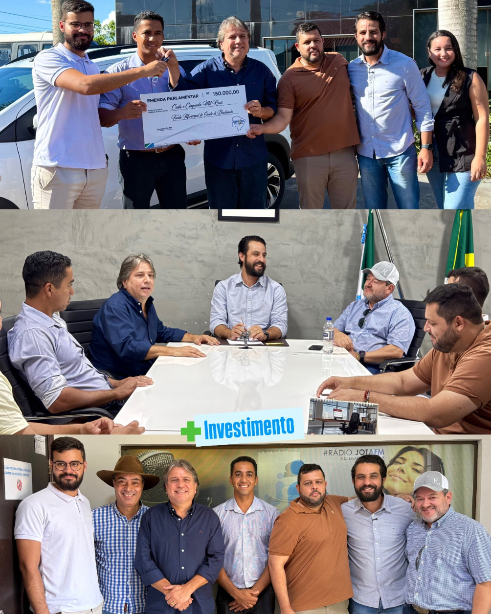 O município de Deodápolis recebeu nesta segunda-feira a visita do deputado estadual Pedro Arlei Caravina, ocasião em que foram confirmados R$ 300 mil em investimentos destinados à área da saúde, por meio de emendas parlamentares. O deputado foi recepcionado pelo prefeito Jean Gomes, pelo vice-prefeito Marcinho, pelos vereadores Elvis do Pelinha e Fernandinha Casusa, da Secretaria de Saúde Andressa da Silva e lideranças locais, reforçando a parceria institucional em prol do fortalecimento dos serviços públicos. Do total de recursos, R$ 150 mil foram destinados em 2025, possibilitando a aquisição de um veículo zero quilômetro, com sete lugares, voltado ao transporte de pacientes autistas e pessoas em tratamento de hemodiálise, ampliando e qualificando o atendimento em saúde. Além do investimento já aplicado, foi anunciada a destinação de mais R$ 150 mil em emendas para o ano de 2026, que também serão direcionadas para ações e melhorias na área da saúde do município. A confirmação dos recursos evidencia a parceria entre o Município de Deodápolis, o Poder Legislativo Municipal e o deputado estadual, com foco na ampliação, estruturação e melhoria dos serviços de saúde oferecidos à população.