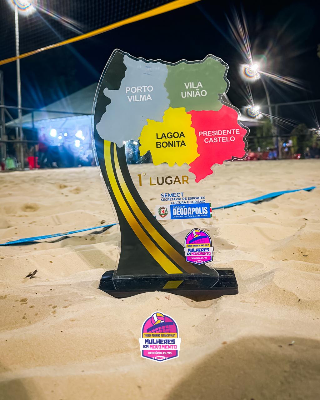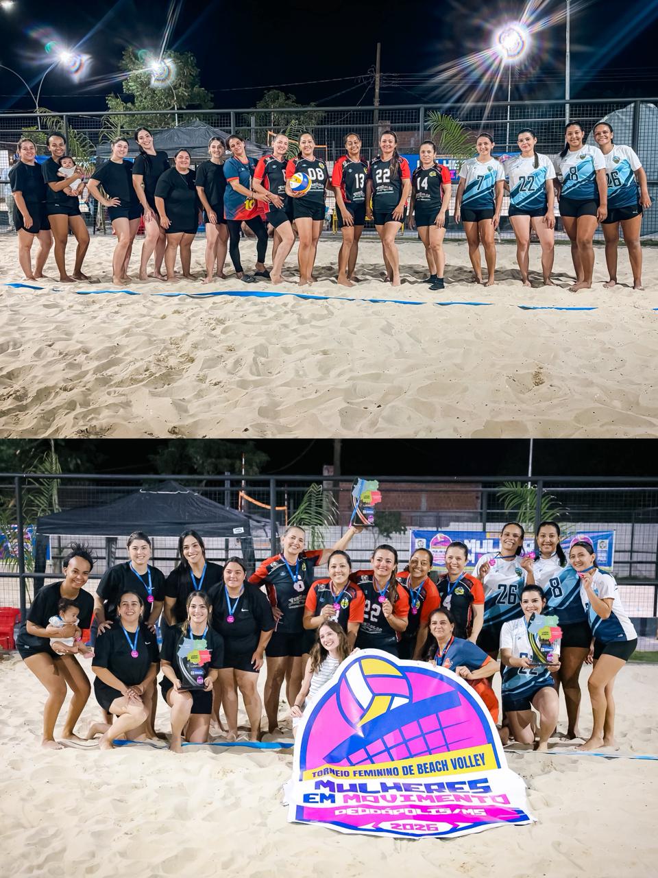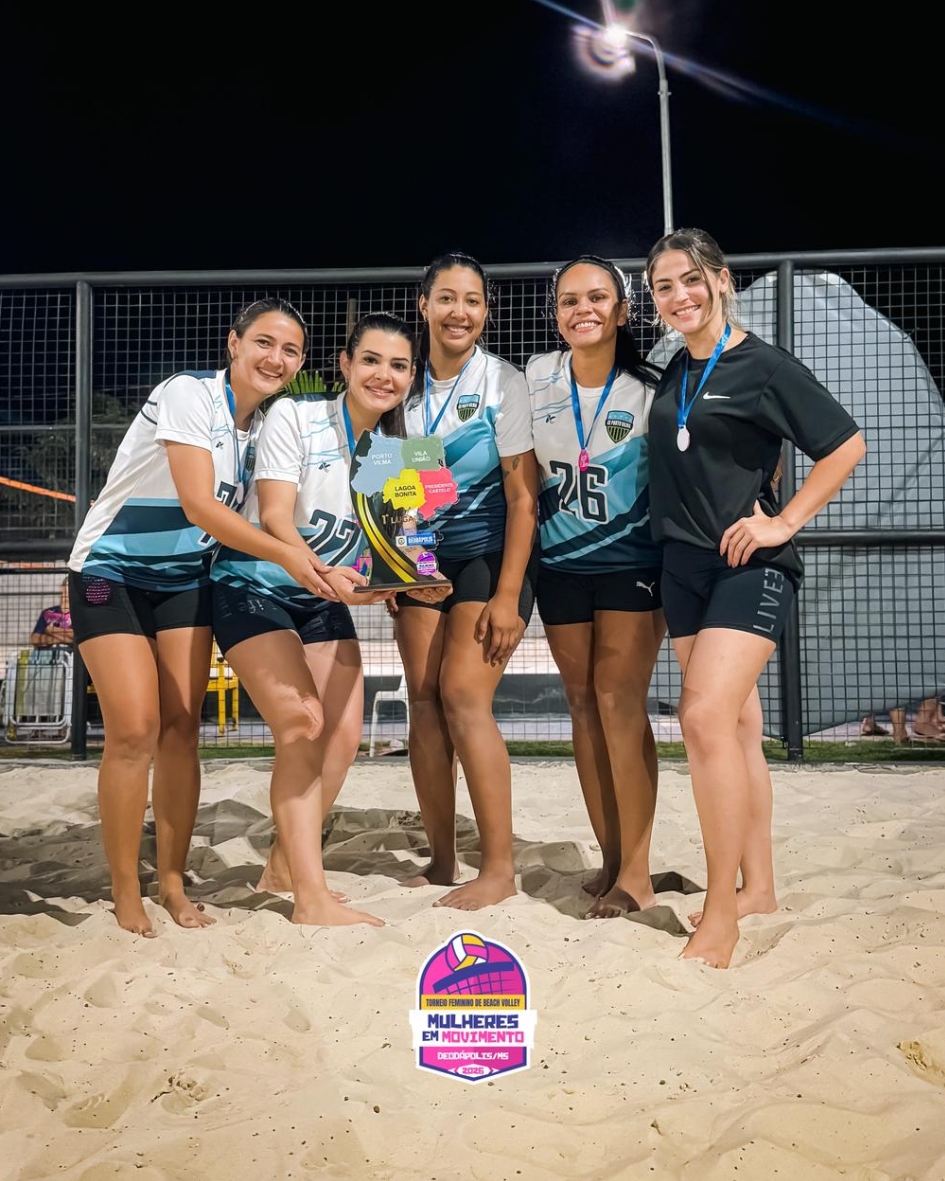 O Módulo Esportivo Sebastião Rodrigues dos Santos foi palco, nesta sábado (07), do 1º Torneio de Beach Vôlei Mulheres em Movimento, evento realizado em alusão ao Mês da Mulher e que reuniu atletas e público em uma tarde de muito esporte e integração. A competição contou com a participação de oito equipes, que protagonizaram partidas disputadas e cheias de emoção, demonstrando talento, garra e espírito esportivo dentro das quadras de areia. Ao final do torneio, o pódio ficou definido da seguinte forma: As equipes deram um verdadeiro espetáculo para o público presente, que acompanhou cada jogo e vibrou com os lances da competição. Além das partidas, o evento também contou com Feira das Mulheres Empreendedoras, espaço kids gratuito, sorteio de brindes e apresentação de pagode, proporcionando um momento de lazer e confraternização para toda a comunidade. O torneio integrou a programação especial do Mês da Mulher, valorizando a participação feminina no esporte e promovendo momentos de união, incentivo e reconhecimento às atletas do município.