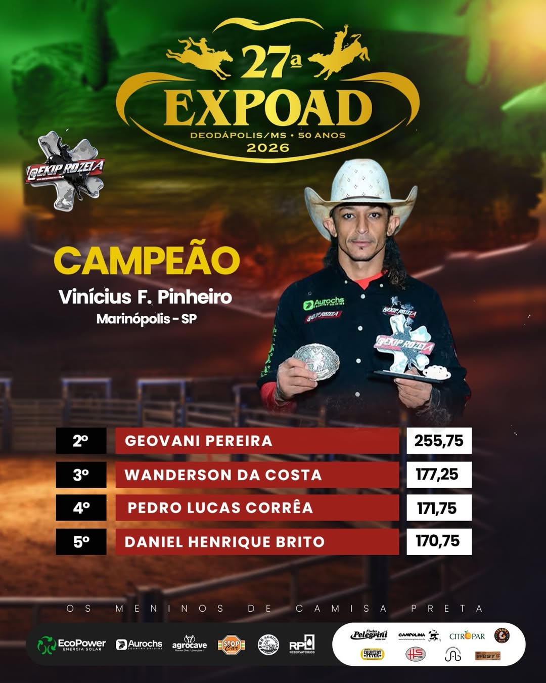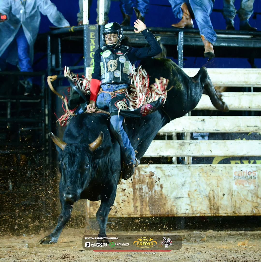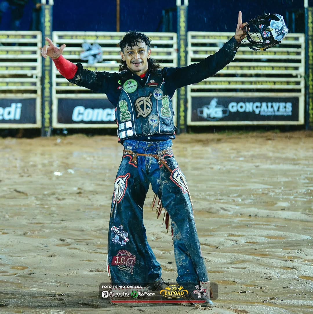 A arena da 27ª EXPOAD, realizada em celebração aos 50 anos de Deodápolis, foi palco de grandes emoções e disputas acirradas no tradicional rodeio em montaria em touros, uma das atrações mais aguardadas da festa. O grande destaque da competição foi o competidor Vinicius Fernando Pinheiro, da cidade de Marinópolis, no estado de São Paulo, que conquistou o título de campeão da montaria em touros, somando 266,25 pontos ao longo das apresentações. Demonstrando técnica, coragem e domínio na arena, Vinicius garantiu o lugar mais alto do pódio em uma disputa marcada por alto nível entre os competidores, reforçando o espetáculo que o rodeio proporciona ao público. O rodeio em touros é uma das maiores tradições da EXPOAD, reunindo atletas de diferentes regiões do país e mantendo viva a cultura sertaneja e o espírito das grandes arenas. Durante todos os dias do evento, a arena recebeu grande público, que acompanhou de perto cada montaria e vibrou com as performances dos competidores. 1º Vinicius Fernando Pinheiro – Marinópolis/SP – 266,25 pontos A 27ª EXPOAD integrou a programação especial dos 50 anos de Deodápolis, reunindo milhares de pessoas em dias de festa, tradição e valorização da cultura do rodeio, consolidando o evento como um dos maiores da região.Classificação final — Montaria em Touros – 27ª EXPOAD
