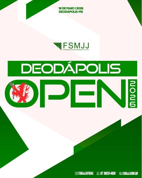 No dia 16 de maio de 2026, Deodápolis será palco de mais uma grande competição esportiva com a realização do Deodápolis Open 2026, evento organizado pela Federação Sul-Mato-Grossense de Jiu-Jitsu (FSMJJ). A competição promete reunir atletas de diversas equipes para um dia de disputas intensas, técnica e grandes lutas no tatame. O Deodápolis Open já tem data marcada e chega com a expectativa de mais um evento de alto nível, fortalecendo o calendário esportivo do município e incentivando a prática do jiu-jitsu entre atletas de diferentes categorias. Além das disputas, o campeonato contará com premiação em dinheiro para as equipes, valorizando o desempenho dos competidores e incentivando a participação de times de várias regiões. Premiação por equipes — Mirim ao Infantojuvenil Premiação por equipes — Juvenil ao Master A expectativa é de que o evento reúna um grande número de atletas e público, consolidando-se como mais uma importante competição esportiva realizada em Deodápolis. As inscrições já estão abertas e podem ser realizadas pelo site oficial do campeonato. Clique aqui para se inscrever.